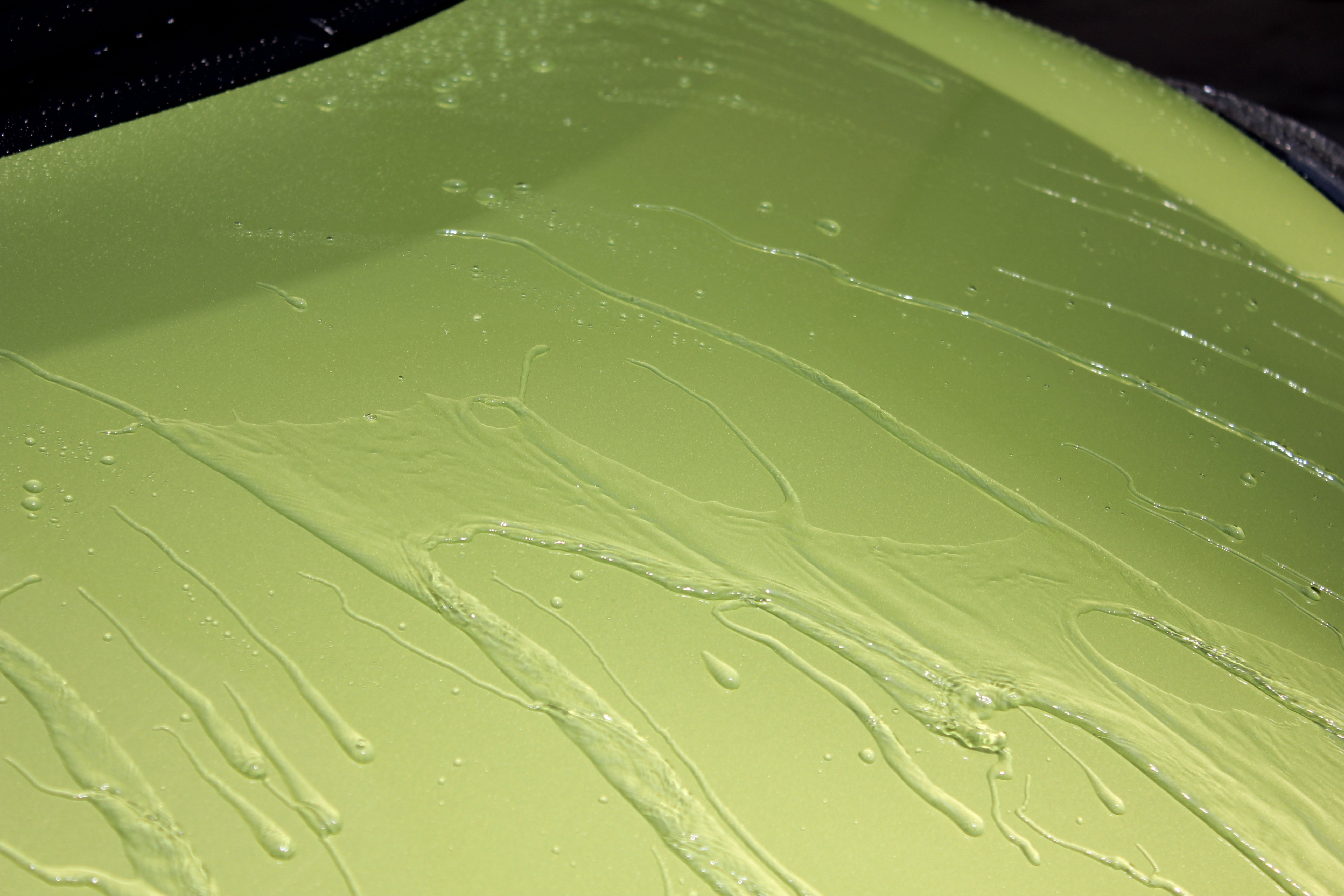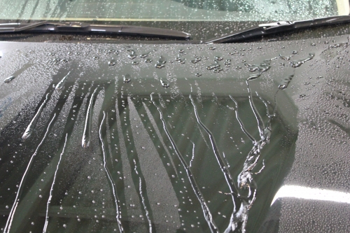 親水性とは、水をかけてもベターっとボディー表面となじむため全く水が弾きません。水が弾かないため、水の膜が張ったような状態になるコーティングです。